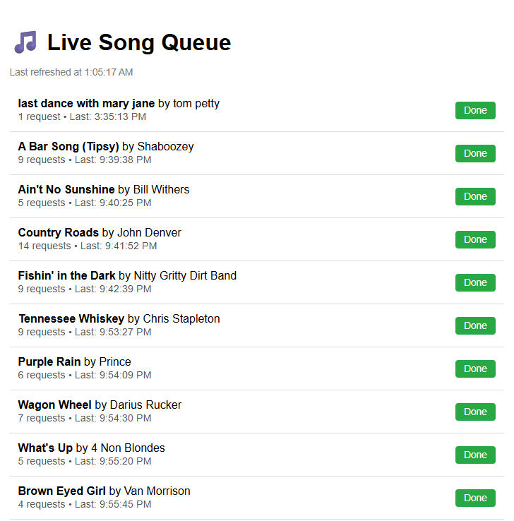 Every request appears here, with song titles listed by time received.You'll always know: