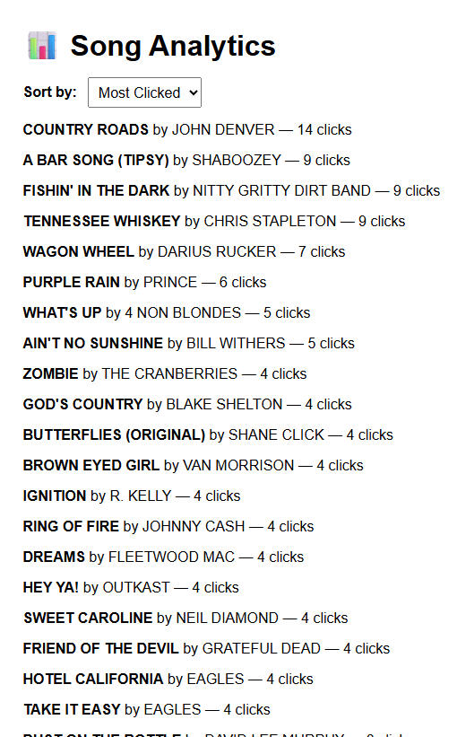 After the show, check your Song Analytics — automatically tracked with every tap.You’ll see:Your most requested songsReal-time fan preferencesWhich songs generate tips — and which ones don’t🧠 Maybe that song you’re tired of playing is actually a crowd favorite. Or maybe it’s time to cut a sleeper track that never gets touched. Now you’ll know for sure.